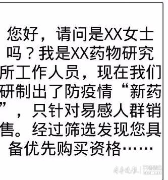 检察官提醒,不法分子假冒政府、医疗机构、药物研究所等名义,以打电话、发短信等方式推销所谓的防疫“新药”、“进口抗疫药品”。用假冒伪劣药品贴上外文标签,冒充国外研制的新药,故弄玄虚,诱导受害人购买。