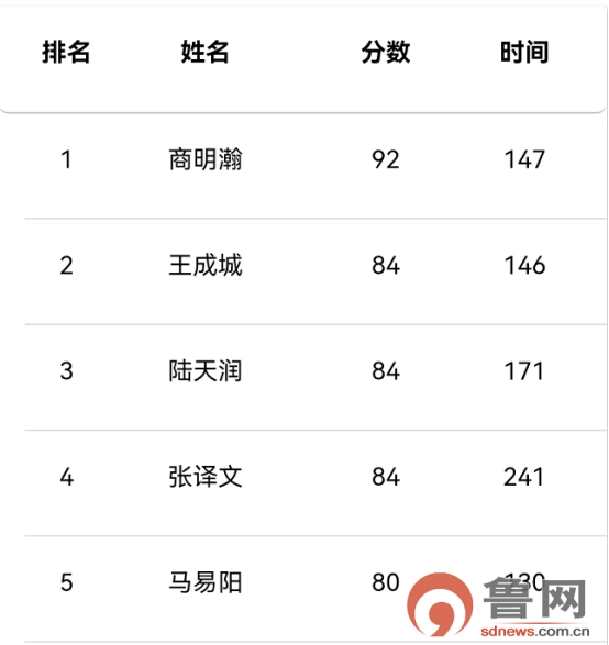 经过两个小时的细心阅读后,比赛进入答题环节。通过扫描鲁网工作人员提供的二维码,进行线上答题,选手们填入个人信息后,开始答题。本次比赛所选题目均为选择题,共25道,答题时长30分钟。答题结束后,系统根据题目正确率以及答题时长,自动产生排名。最终,商明瀚、王成城、陆天润、张译文、马易阳5位选手获得菏泽赛区第二场的前五名,进入下一轮的比赛当中。