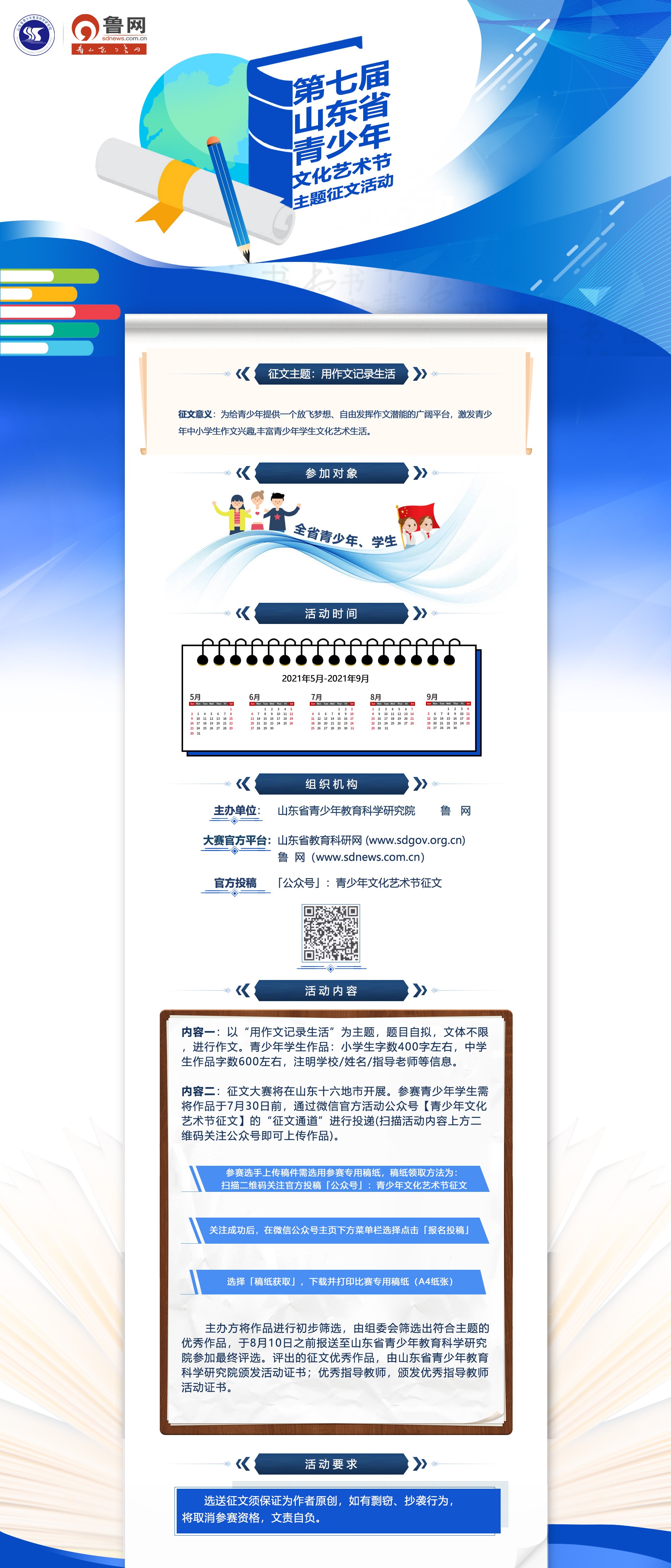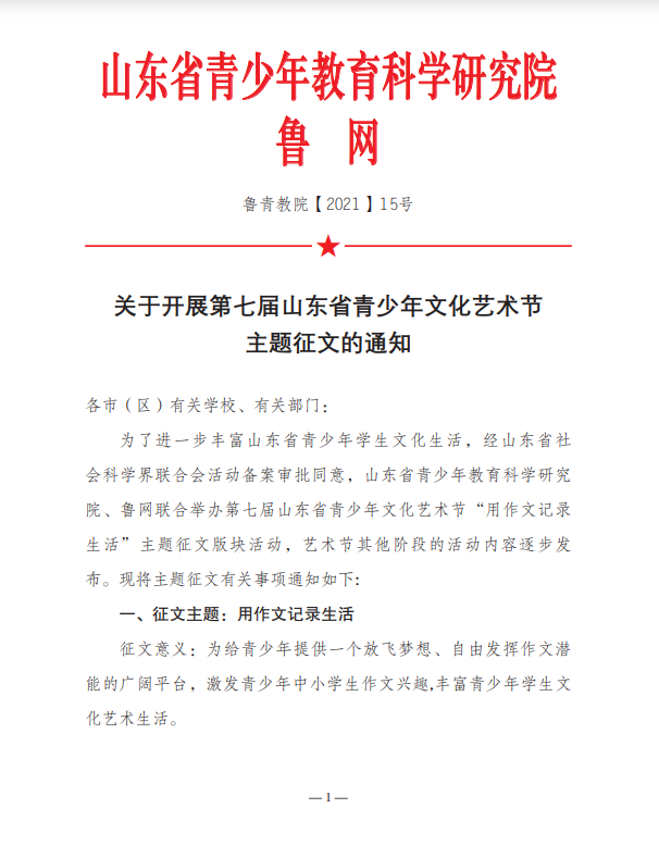 放飞青春梦想 提升写作潜能 2021山东省青少年文化艺术节主题征文活动启动