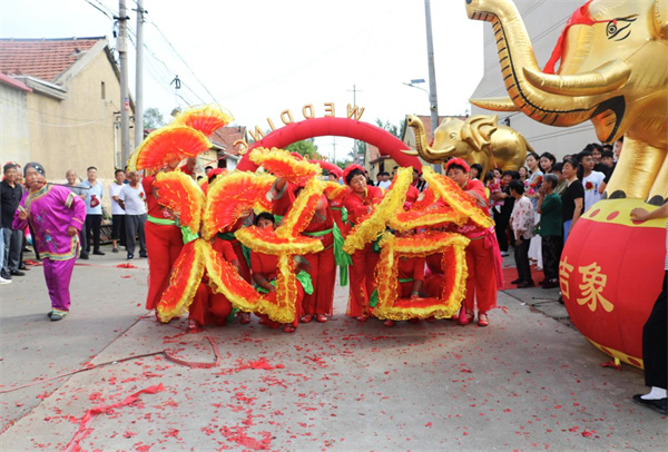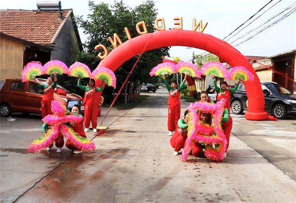 鲁网7月7日讯 农历六月初八,阳信县流坡坞镇二陈新村里喜庆的音乐、“百年好合”“双喜临门”的彩字轮流上演。“非常感谢咱镇上喜上家喜的文化文艺公益助演队,为咱村这对新人送上新婚的祝福,也为村里移风易俗工作打开了新思路,倡树了新风气,以前是比着看谁家花钱多,请的队伍跳得好,现在有了公益队伍,跳得又好,谁还再花大几千请啊,这是省钱又助兴的好事啊。”村干部陈福忠笑着说道。