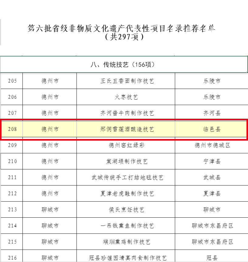 鲁网12月27日讯(记者 赵洪斌)2024年12月19日,洛北春·邢侗雪莲酒传统酿造技艺被山东省人民政府批准列为第六批省级非物质文化遗产代表性项目名录。