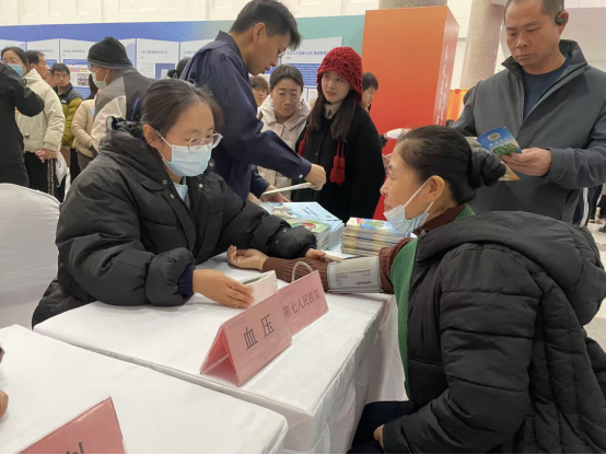 此次义诊活动由德州市第七人民医院副主任检验师、健康科普专家走基层服务管理办公室郭璞带队,抽调职业病科、心血管内科等多科室骨干力量组成服务团队,涵盖健康管理、职业病防治、慢性病咨询等多学科领域。义诊现场,医护人员耐心细致地为前来参加招聘活动的群众测量血压,普及职业病防治与常见慢性病管理知识,并仔细询问他们的身体状况、日常饮食及作息习惯,逐一给予个性化的专业健康指导。