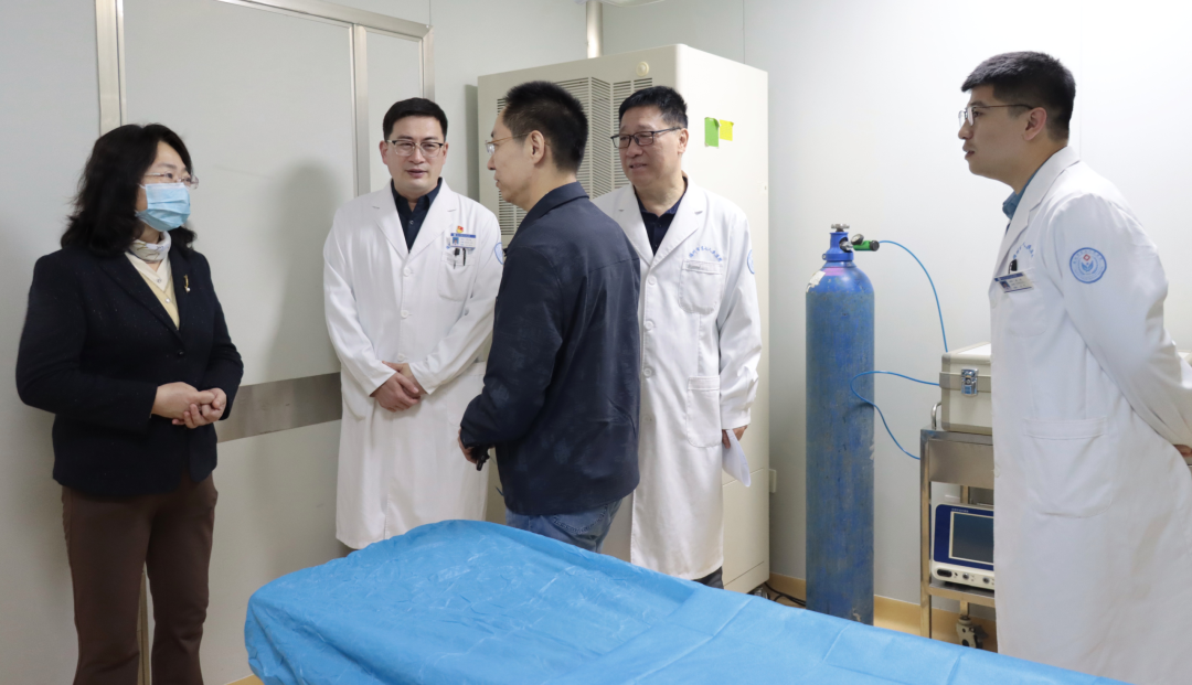 仪式开始前,肖建民先后参观了疼痛门诊、疼痛门诊手术室、疼痛治疗室,详细查看了诊疗设备配置、诊疗环境布局等情况,对门诊的规范化建设给予了充分肯定,并就诊疗流程优化、技术开展等方面提出了建议。