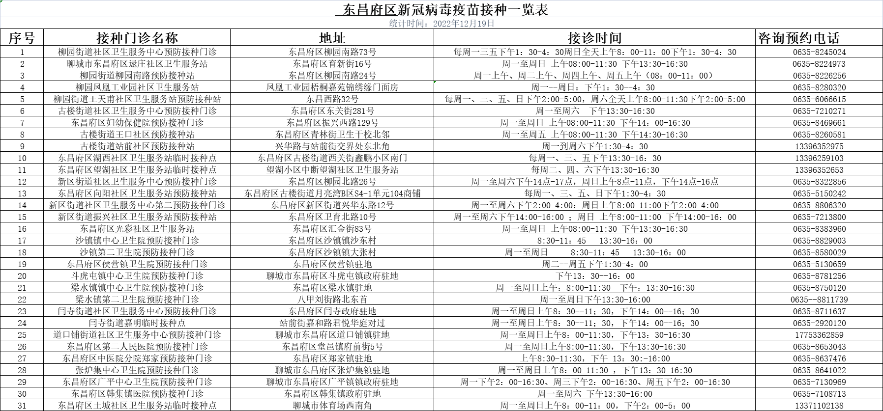 聊城东昌府区新冠病毒疫苗接种门诊公布!