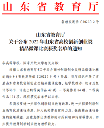 淄博职业学院在山东省高校创新创业类精品微课比赛中喜获佳绩