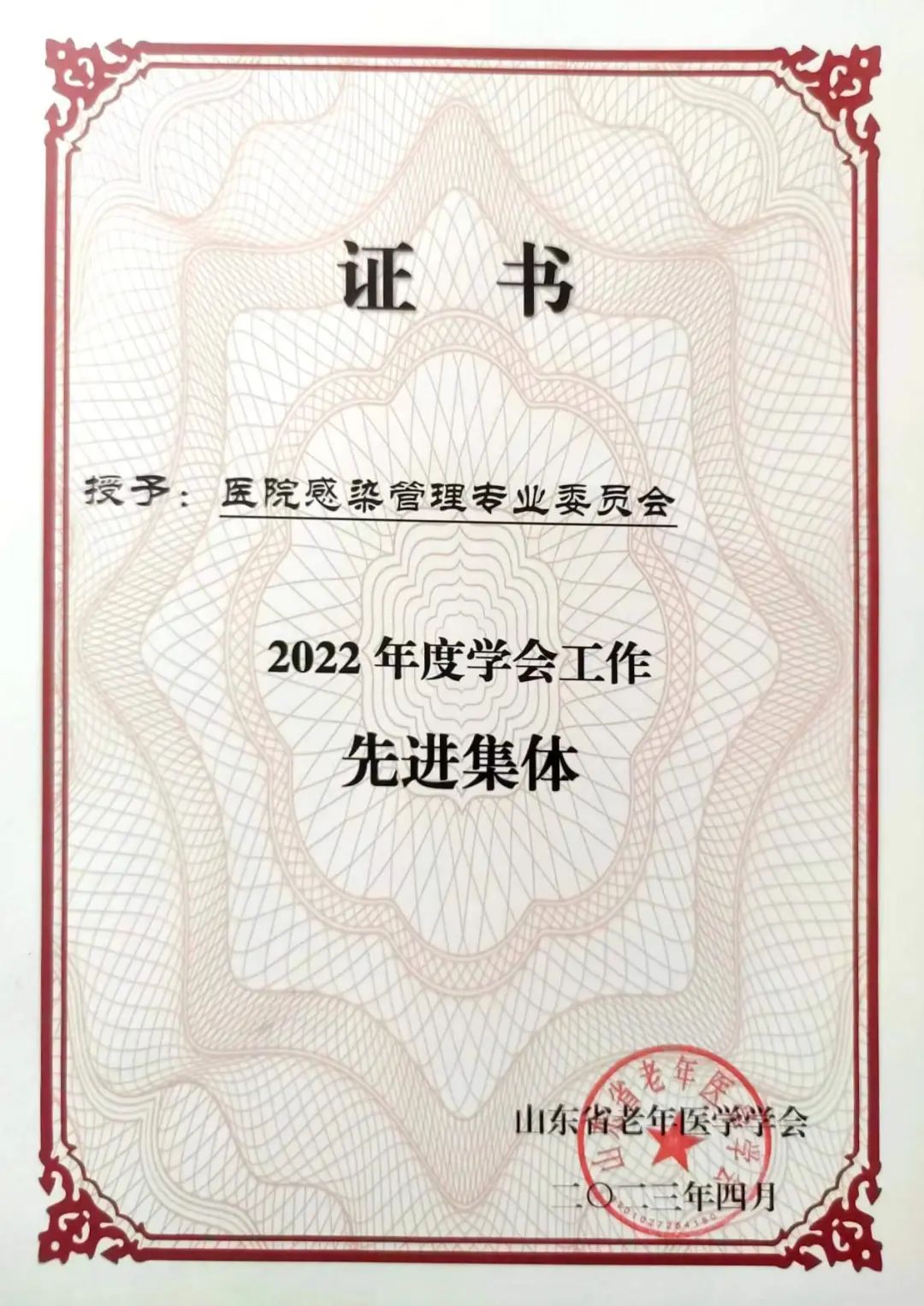 聊城市第三人民医院院感染管理委员会荣膺“山东省老年医学学会先进集体”