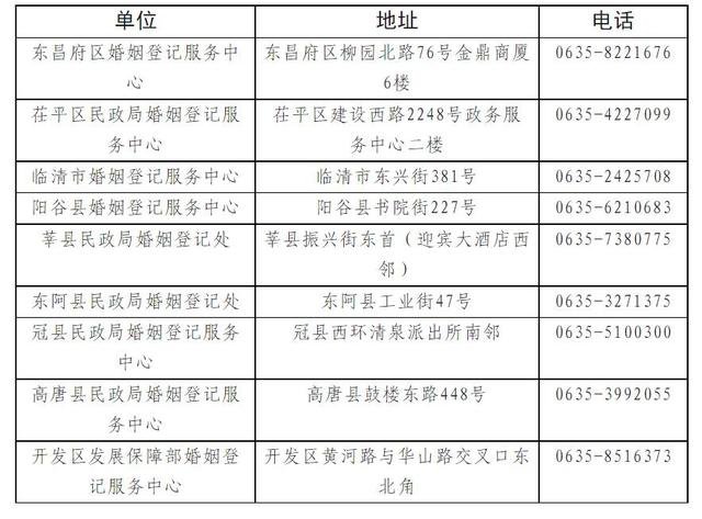 聊城市各婚姻登记处5月20日正常办理婚姻登记业务