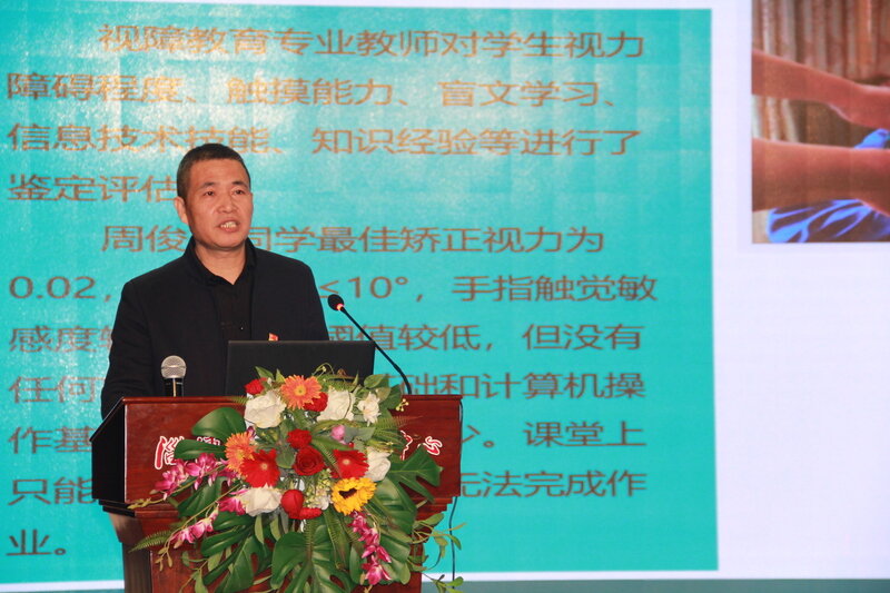 会上,张店区特殊教育中心学校党支部书记、校长于丽娜和博山区五岭路小学教师于宗铭分别代表特殊教育学校和资源教师发言。市特教中心教师蔡兵作视障学生随班就读指导典型案例分享。