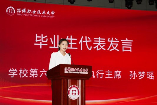 毕业生代表、人工智能与大数据学院毕业生孙梦瑶表示,作为淄职大首届毕业生,将带着“淄职大学子”的荣光,践行"只有拼搏,才是人生价值的最好体验"的校训,在各自领域勇毅前行。祝愿母校桃李满天下,愿同学们前程似锦!