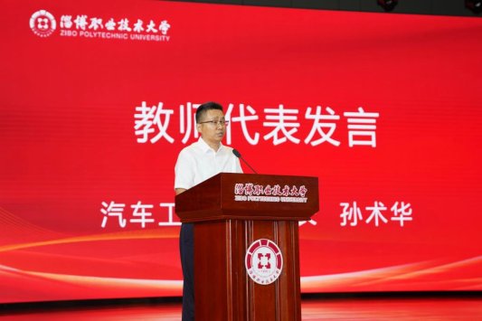 孙正代表学校向淄博职业技术大学首届毕业生致以最热烈的祝贺和最诚挚的祝福。他表示,这三年,你们在知识的海洋里遨游,在实践的舞台上磨砺,在挫折的考验中锤炼。你们用努力奏响了属于自己的青春华章,也和淄职大一起谱写了精彩的发展篇章。你们是淄职大历史新纪元的见证者,更是推动者和贡献者。他勉励大家:希望你们心怀家国,做忠诚爱国的践行者;希望你们勤奋笃行,做脚踏实地的奋斗者;希望你们勇于创新,做开拓进取的追梦人。他叮嘱同学们,从今天起,你们拥有了一个共同的名字——淄博职业技术大学校友。请记住:志在云天,不坠青云之志;脚踏实地,不负时代之托。当你们倦了、累了,回首处,淄博职业技术大学永远是你们的精神原乡!