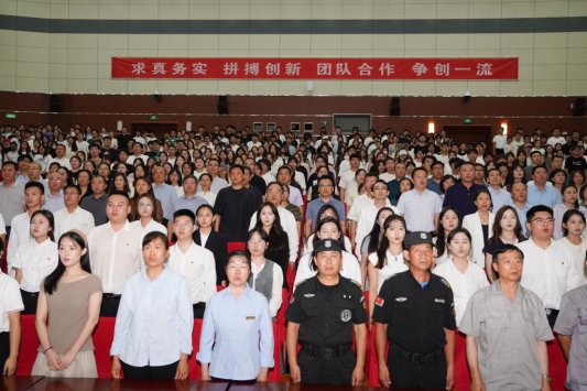“画卷你我绘,蓝图展雄风,砥砺新时代,在拼搏中前行……”典礼最后,辅导员代表与大家一起唱响校歌《在拼搏中前行》,助力同学们顺利踏上新征程!临别之时,典礼现场响起了歌曲《再见》的旋律,随即化作全场的共鸣,师生们在歌声中依依惜别。
