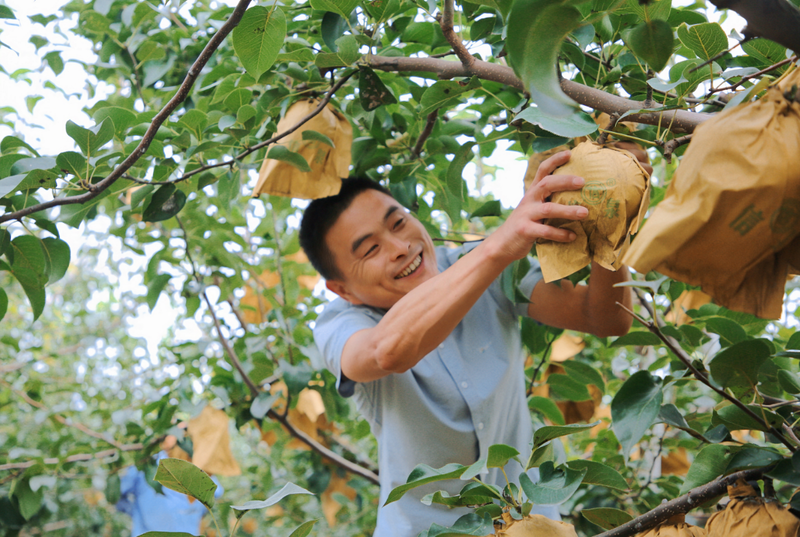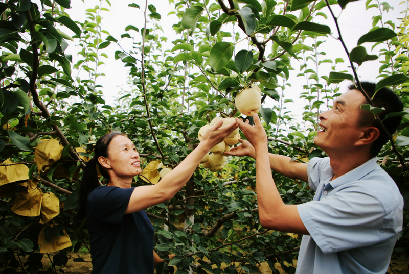 在聊城市冠县桑阿镇白佛头村的冠县华伟蔬菜种植专业合作社梨园里,扫视着枝头上沉甸甸的梨子,负责人刘伟和妻子刘丽华脸上洋溢着丰收的喜悦。