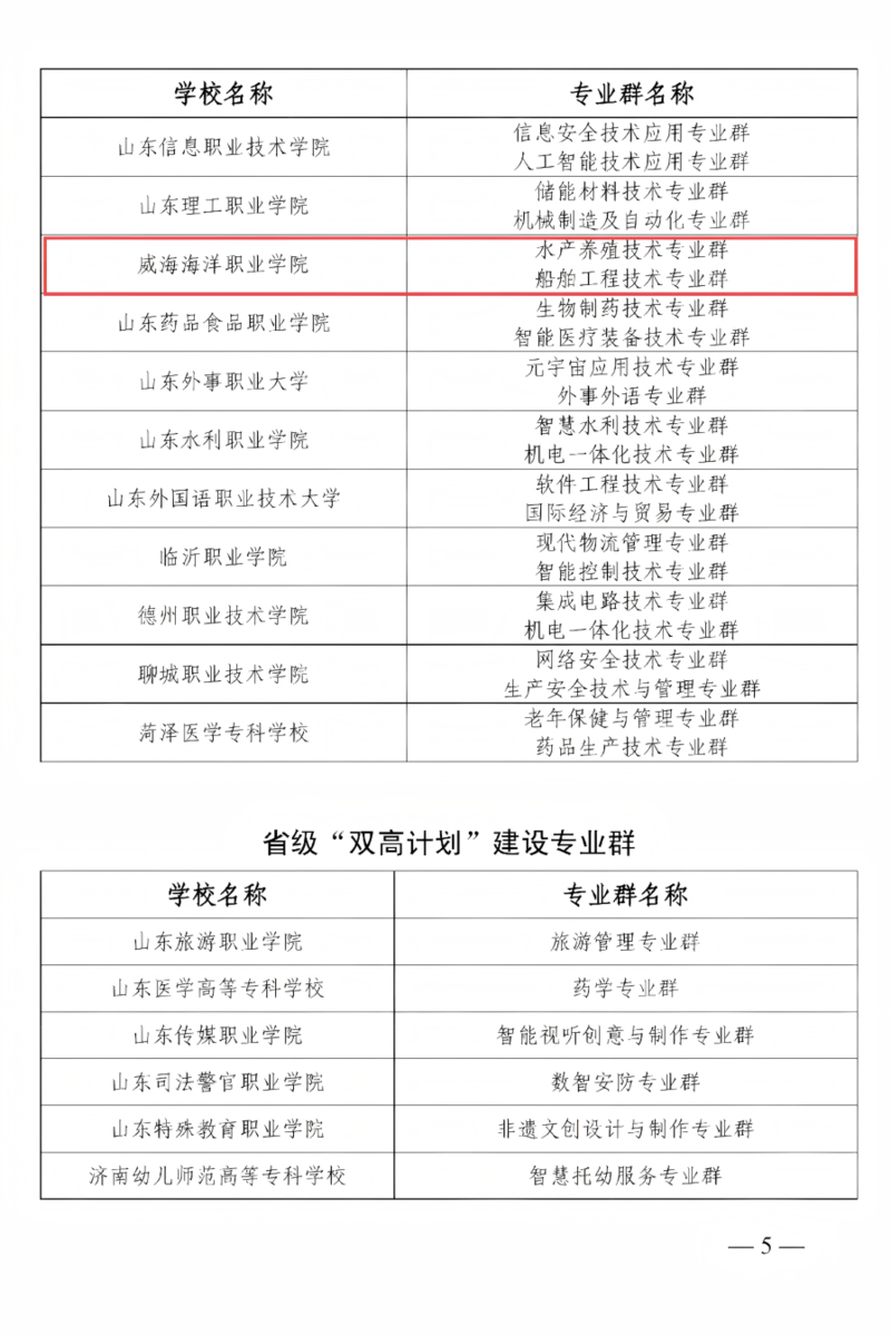 威海海洋职业学院成功入选山东省“双高计划”建设学校