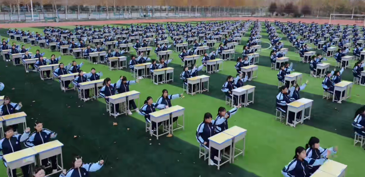 伴随着欢快激昂的旋律,各班级学子以课桌为“舞台”,用整齐划一的动作、昂扬向上的姿态,展现出独特的青春风采。同学们时而抬手、时而转身、时而跳跃,将舞蹈节奏与课桌道具巧妙融合,动作刚劲有力又不失灵动活泼,眼神中满是自信与热情。每一支队伍都精心设计了独特的表演形式,从正能量校园歌曲的节奏适配到创意队形的默契配合,既展现了团队协作的凝聚力,又彰显了学子们积极向上、勇于创新的精神品质。