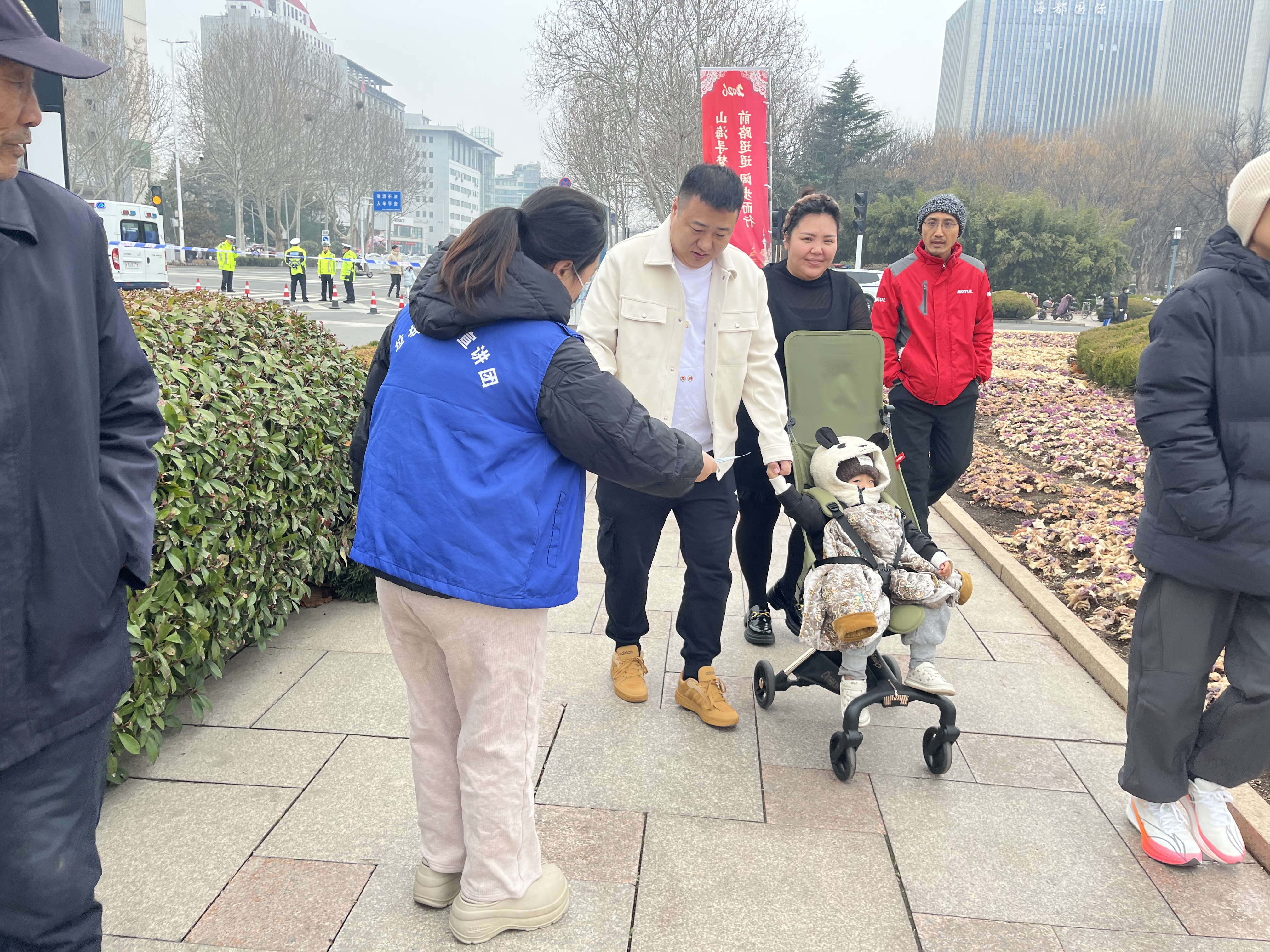 活动当天,城阳区“分行者”垃圾分类宣讲团所有志愿者早早到达区政府广场活动现场,在北侧广场上搭建起专业宣讲展位,宣传志愿者们在为来往的居民朋友及游客送去节日祝福的同时,也将一份绿色低碳的提醒温馨送达。大家边沿路分发生活垃圾分类宣传单页,边耐心解答着居民朋友们提出的日常生活中遇到的分类难题。