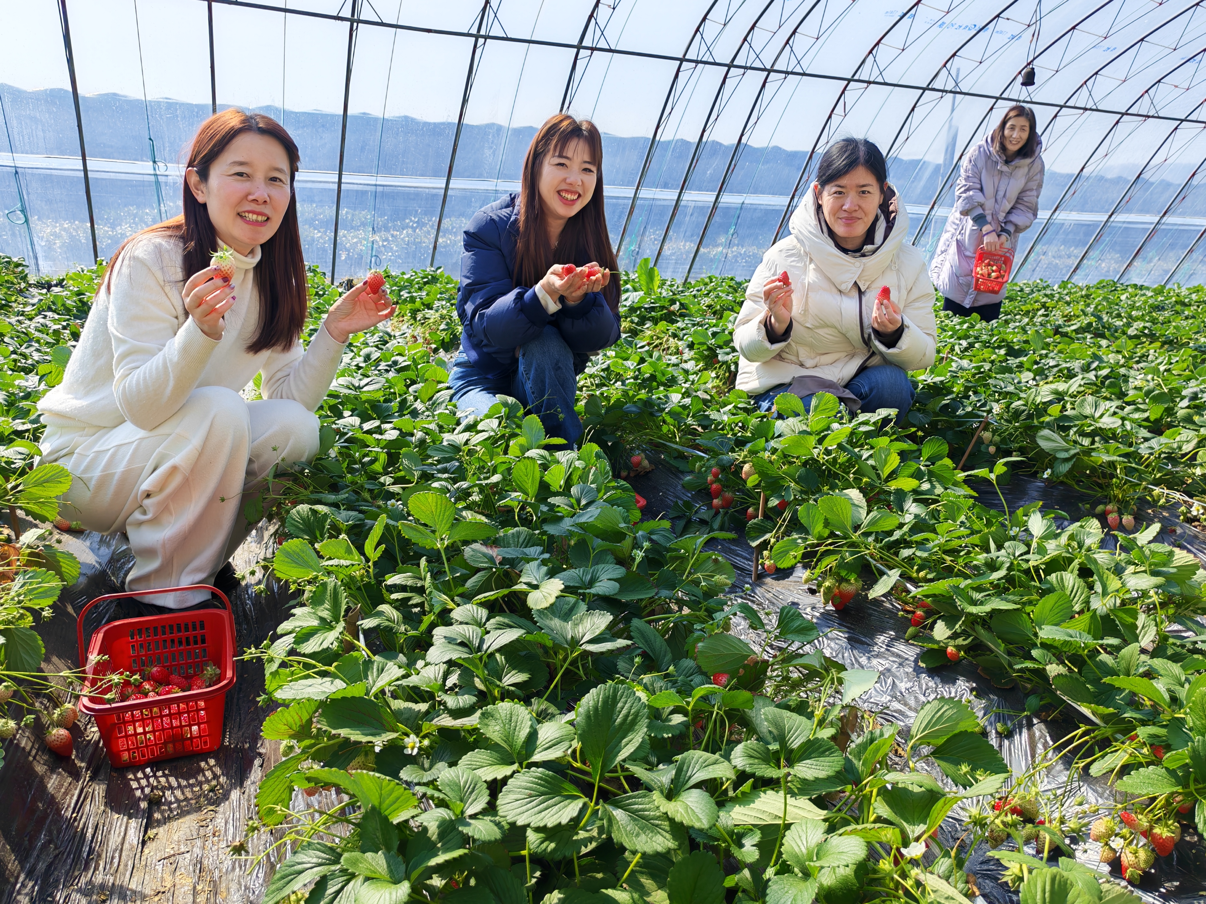 活动当天,春风和煦,阳光明媚,女员工们统一乘车前往蹬山草莓采摘基地,一路上做游戏、讲笑语,车厢内欢声笑语不断。过了半个多小时的车程,很快就到了草莓大棚,一进棚,满眼翠绿映入眼帘,一颗颗红彤彤的奶油草莓点缀其间,色泽鲜亮,宛如一颗颗晶莹剔透的红宝石,散发着浓郁的香味,令人垂涎欲滴。在工作人员的简单讲解后,大家依次领取采摘用的采摘果篮,纷纷走到田垄间,开启了开心的采摘之旅。大家三三两两结伴而行,纷纷挑选自己最喜爱的草莓,并不时地和身边人分享挑选草莓的小技巧,有的人随手拿出手机,为同事拍下温馨美好的瞬间。有的人说,感觉自己亲手采摘的草莓比买的更加香甜。旁边的人看着诱人的草莓,忍不住摘下一颗又大又红的草莓放入口中去品尝,一瞬间,甜蜜的味道在舌尖蔓延,冲击着味蕾,让人想再摘一颗放入口中……在这里,大家暂时放下工作的忙碌,充分感受亲手采摘的乐趣。