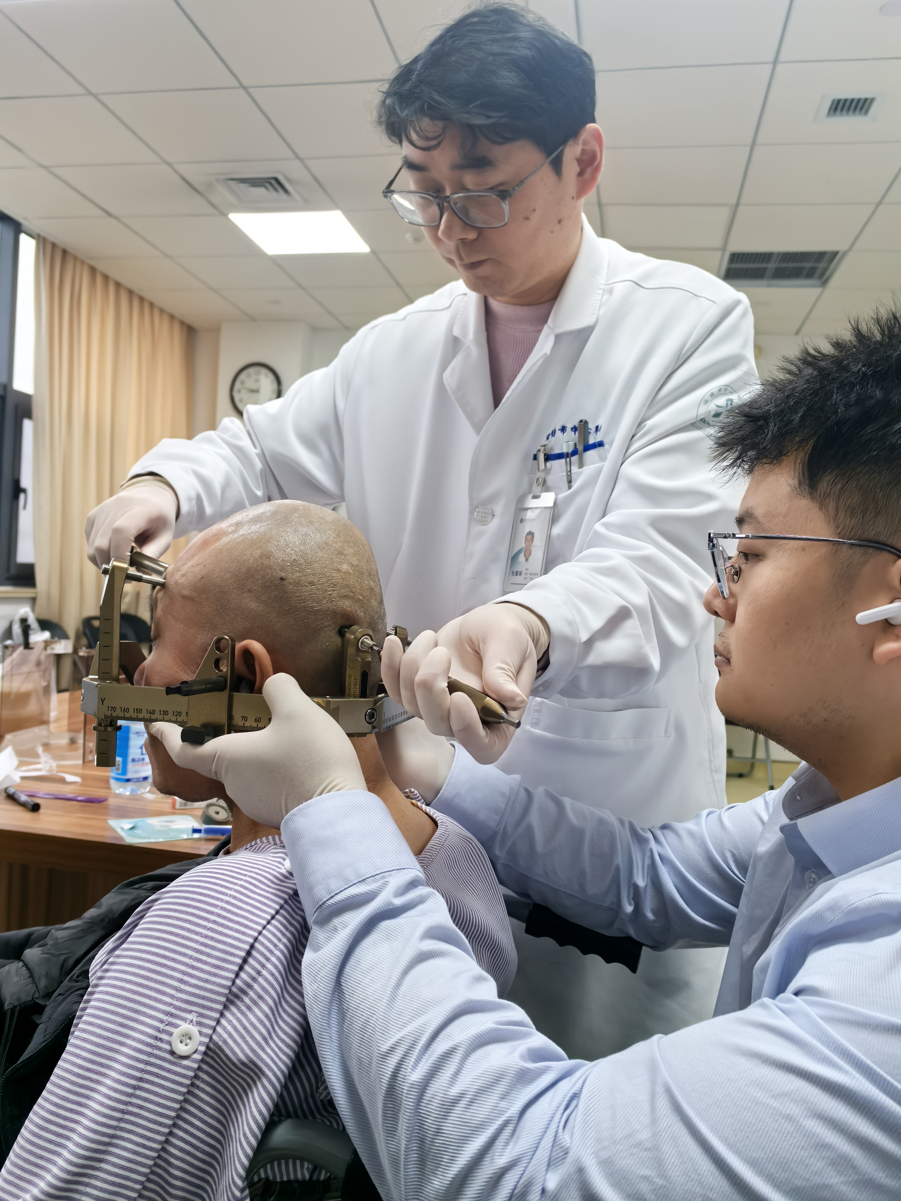 DBS手术又称“脑起搏器”手术,是目前治疗中晚期帕金森病的先进外科手段,通过在大脑特定靶点植入电极,释放电脉冲精准调控异常神经环路,改善震颤、僵直、运动迟缓等症状。此次开机过程采用无创操作,医生通过体外程控仪与患者体内神经刺激器连接,从最低刺激强度开始,逐步增加电压并测试不同电极触点,最终找到疗效最佳、副作用最小的参数组合,包括电压、频率、脉宽等核心指标。
