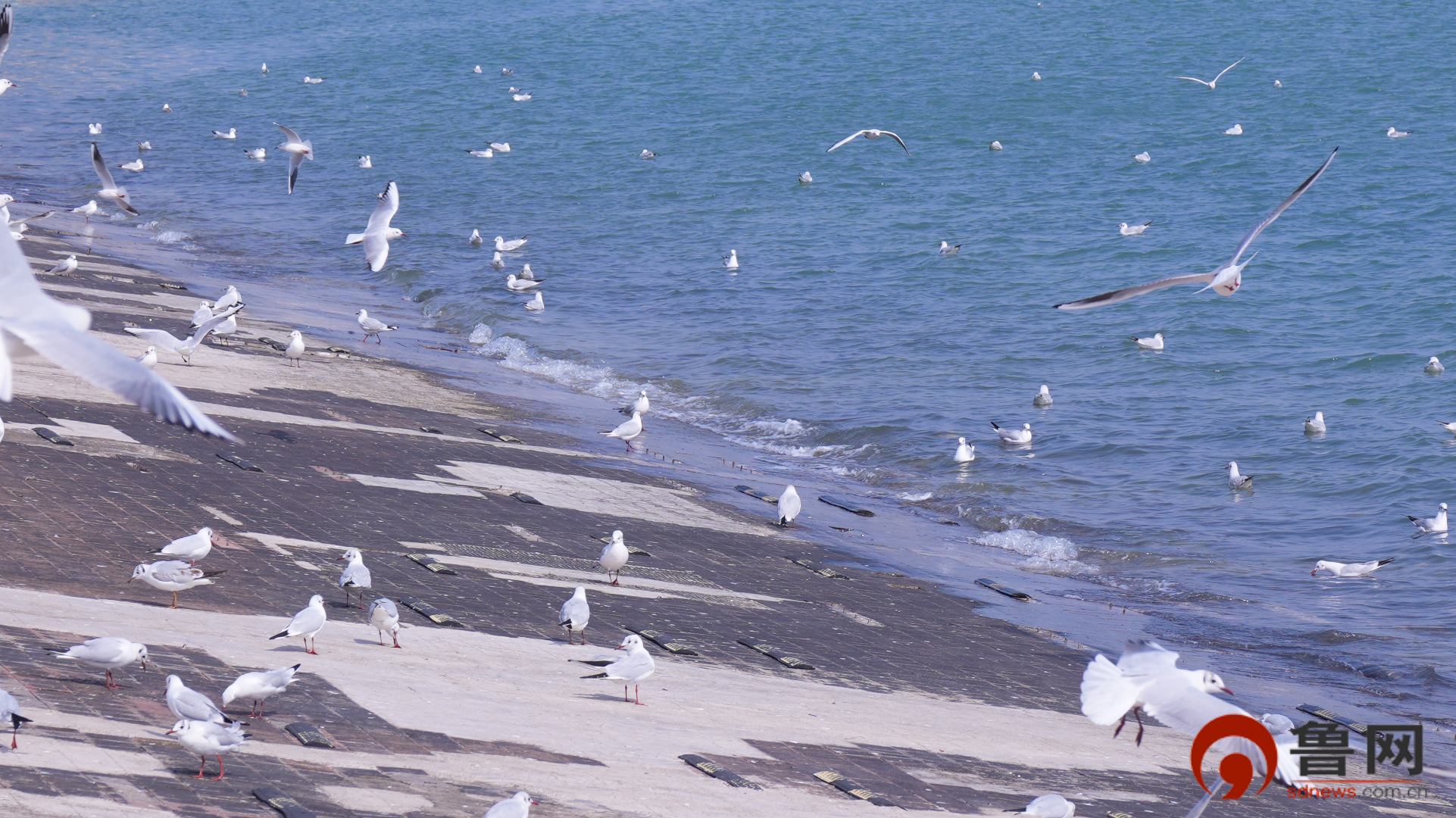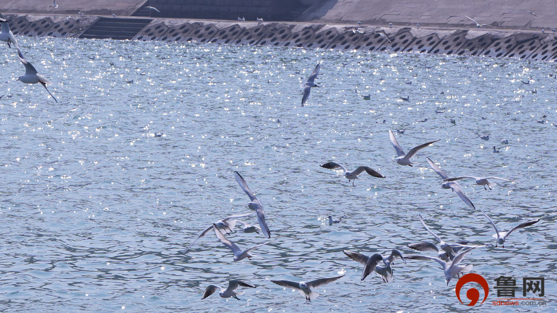 鲁网3月13日讯 (记者 王一凡 实习记者 贾若雨)春日阳光和煦,水面波光粼粼,日照世帆赛基地的上空和水面,汇聚了一群优雅的“白色精灵”。来自西伯利亚的海鸥们或闲庭信步,或盘旋滑翔,又或叼一口面包屑后扬长而去。时光似都慢下来,“欧欧”叫着、自由翱翔的海鸥,成了这幅海滨画卷里永恒的景色。