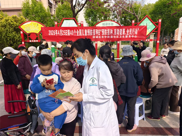 鲁网4月24日讯 为切实提高辖区群众对预防接种知识的知晓率,筑牢儿童免疫屏障,保障儿童身体健康,2026年4月23日,在第40个“全国儿童预防接种日”来临之际,滨城区区直机关医院、市中街道社区卫生服务中心走进重阳广场,开展以“预防接种、苗助健康、全民行动”为主题的大型宣传义诊活动,将专业的免疫规划科普与便民服务送到群众身边。