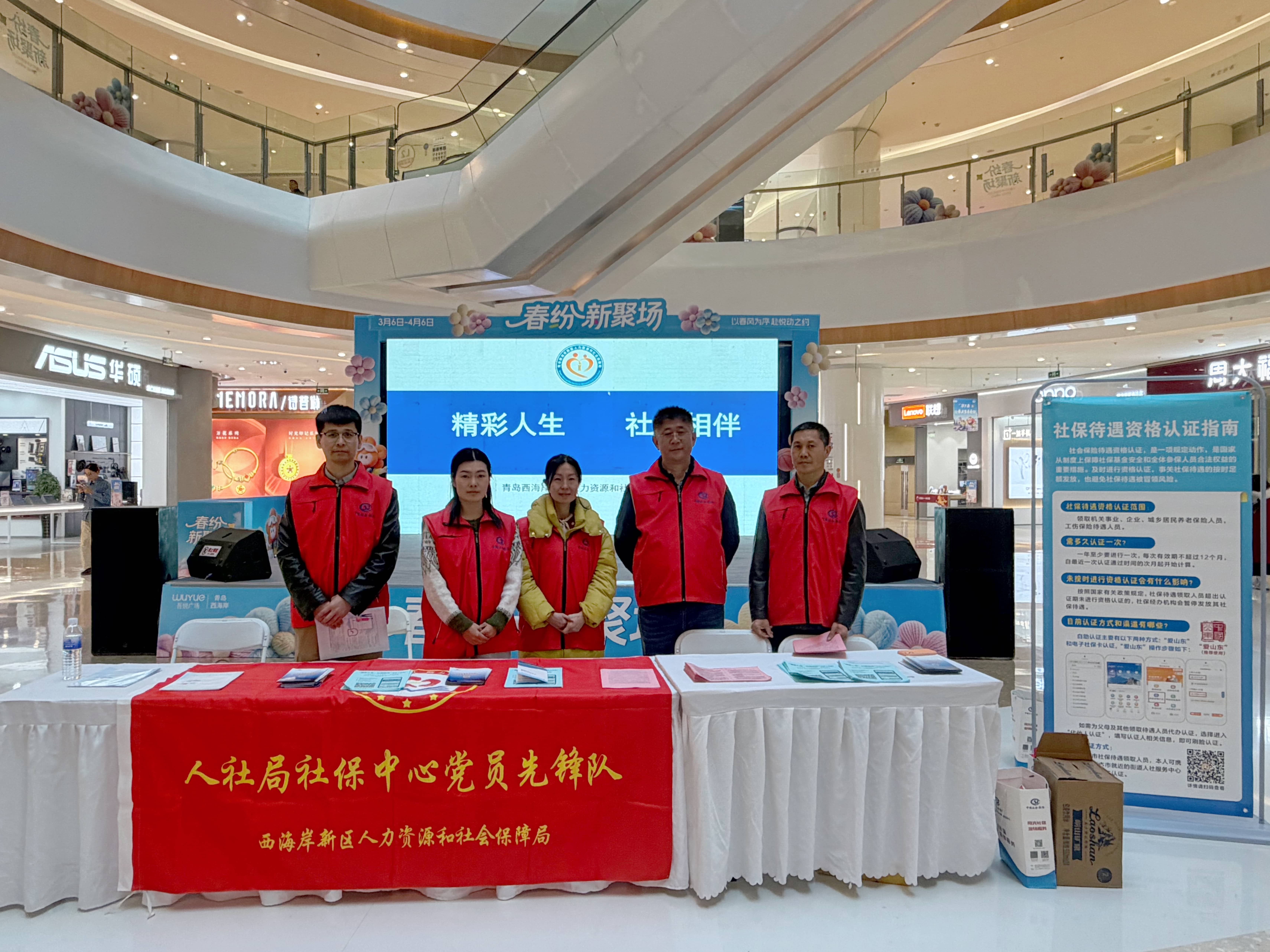 3月20日,青岛西海岸新区人力资源和社会保障局在新城吾悦广场精心打造社保暖“新”服务集市。