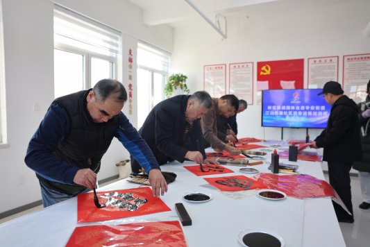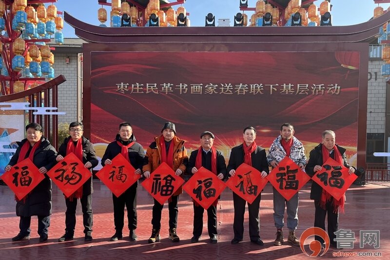1月7日,中国大众文化学会原副秘书长、枣庄市薛城区政协副主席、民革书画家姚三石带领部分政协委员和民革书画家开展“枣庄民革书画家送春联下基层”活动走进云溪小镇。