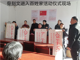 丁再献骨刻文书法进百家、平生夙愿得实现,300余幅骨刻文书法作品赠给家乡父老。