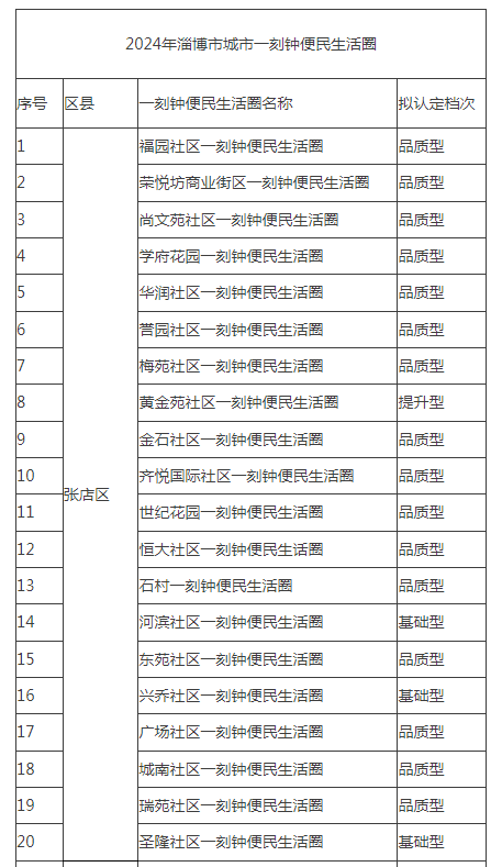 淄博公示2024年度城市一刻钟便民生活圈名单