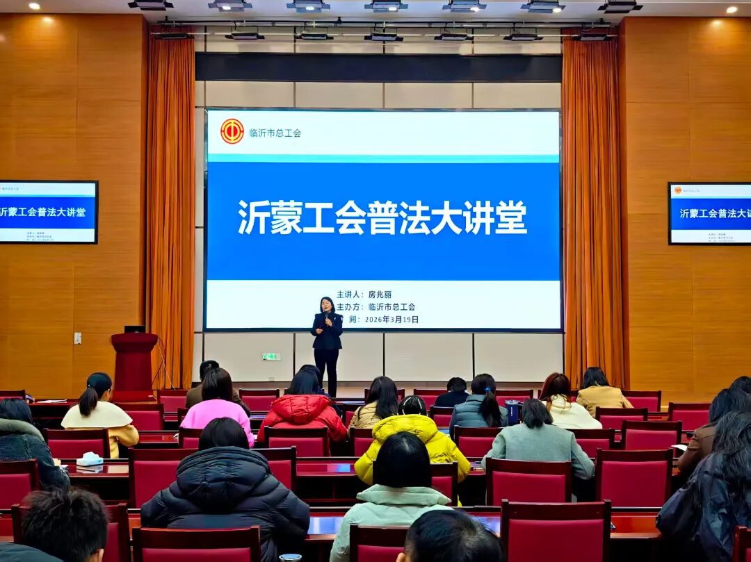 2026年3月19日上午,临沂市总工会在市工人文化宫举办沂蒙工会普法大讲堂暨劳动用工管理实务培训讲座。山东星阔律师事务所律师房兆丽主讲。