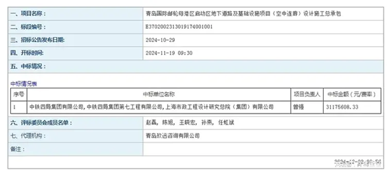 日前,青岛市公共资源交易电子服务系统发布青岛国际邮轮母港区启动区地下道路及基础设施项目(空中连廊)设计施工总承包,中标单位为中铁四局集团有限公司,中铁四局集团第七工程有限公司,上海市政工程设计研究总院