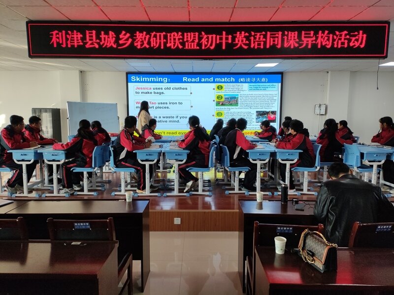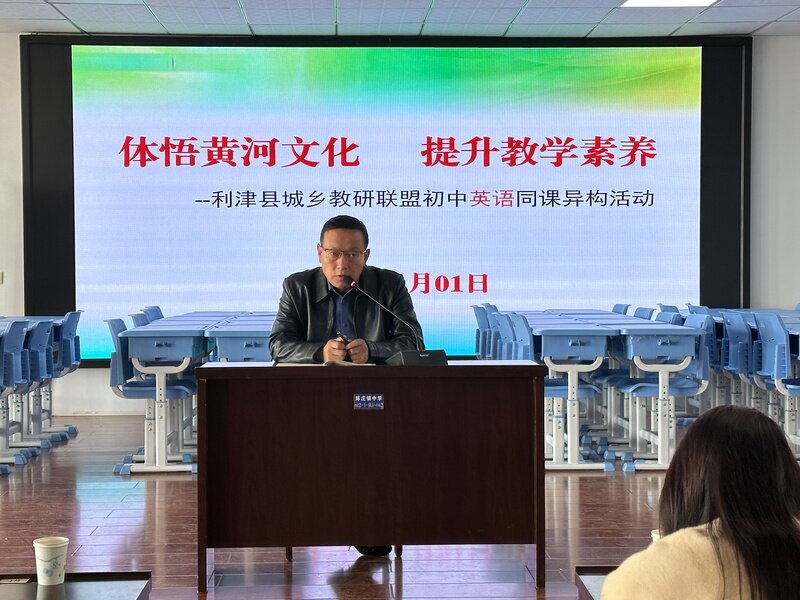 鲁网12月1日讯 为加强城乡学校之间的交流与合作,提升教师的专业素养和教学能力,促进城乡教育的均衡发展,12月1日上午,主题为《体悟黄河文化,倡导绿色环保,提升教学素养》的利津县城乡教研联盟初中英语同课异构活动在东营市利津县陈庄镇中学顺利举行。名师工作室主持人劳新成、陈庄汀罗教研联盟负责人綦荣亮主任、陈庄汀罗教研联盟全体英语老师参加,教导处副主任王新华主持本次活动。