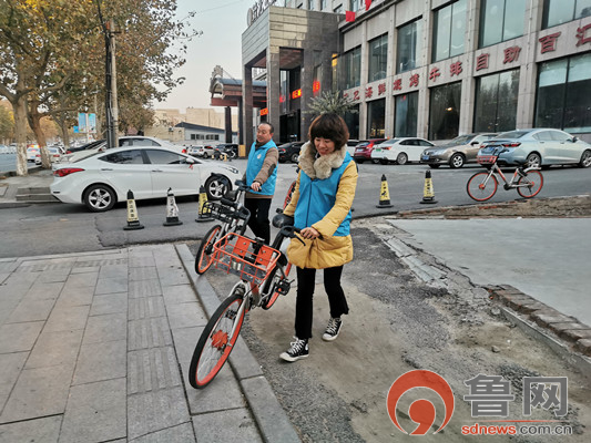 摆放共享单车,倡导文明骑行——新华保险莱芜中支志愿者帮助落单“共享单车”归队