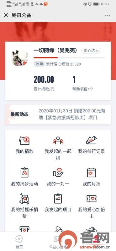 疫情暴发,时刻牵动着吴兆宪的心。1月30日,他通过银行转账的方式向湖北省慈善总会捐款2200元。“我每天都会关注疫情的实时动态,我非常着急,终于获取到了湖北慈善总会的捐款渠道。虽然这次捐款数额不多,但是一有机会,我肯定继续再捐。国难当头,我希望我能尽一份绵薄之力。”他真诚地说。一方有难,八方支援。在社会各界的共同努力之下,众志成城,我们一定能战胜一切困难。