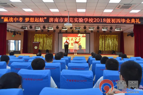 鲁网6月11日讯(记者 亓若琳 通讯员 鹿国栋)麦香氤氲人倍忙,榴花灿然骊歌响。6月10日,济南市莱芜实验学校部分领导和初四全体师生齐聚报告厅举行2018级毕业典礼。