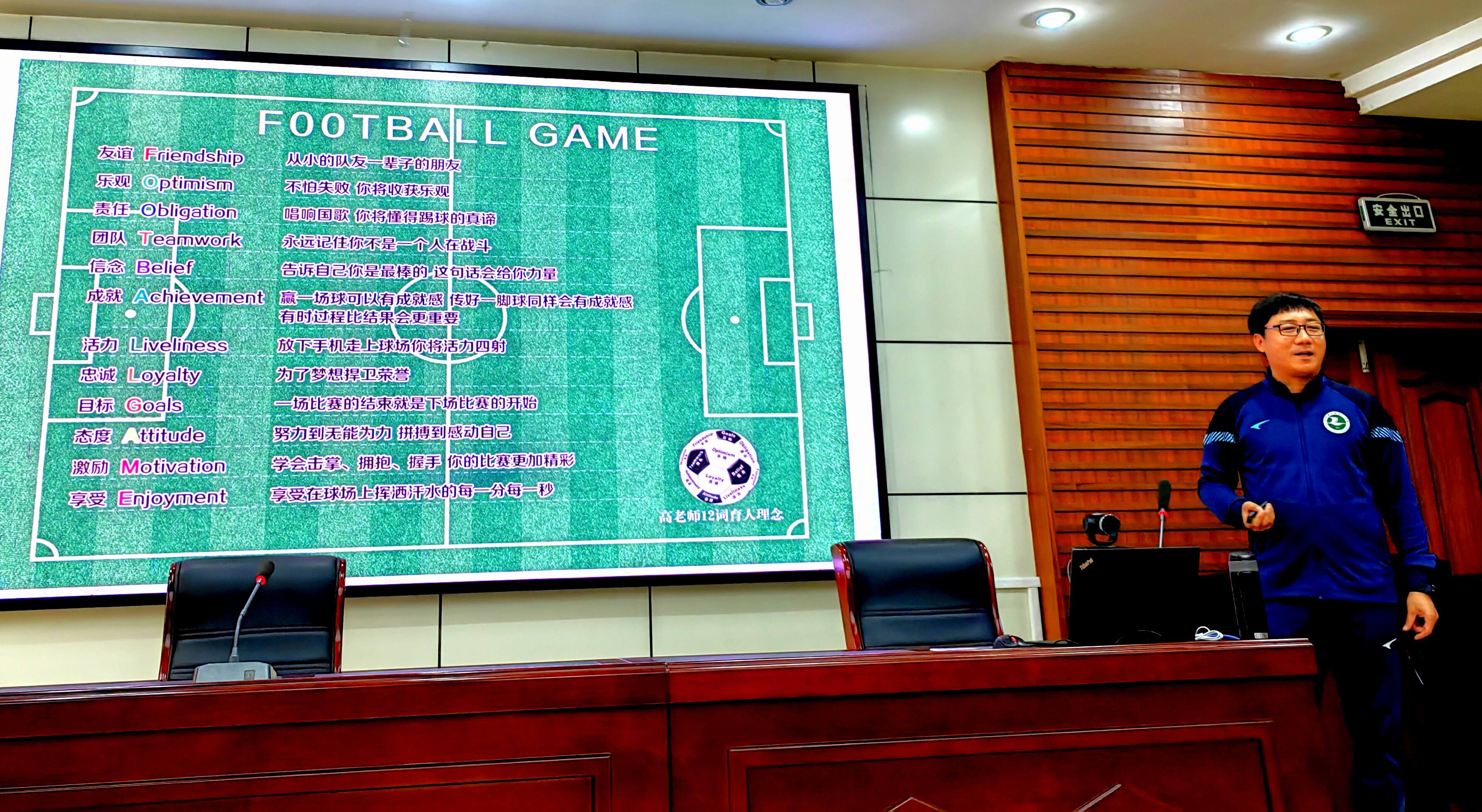其次,历城二中女子足球队教练姚波老师作了一场题为《立德树人守初心 培根铸魂育新人》的精彩报告,报告从姚教练带队训练的亲身经历阐述了体育人的初心和使命,姚波教练重点阐述了体育的重点不在“体”而在于“育”,把“以体育人”的深刻意义阐述的淋漓尽致,值得每一位体育教师去感悟学习和借鉴。