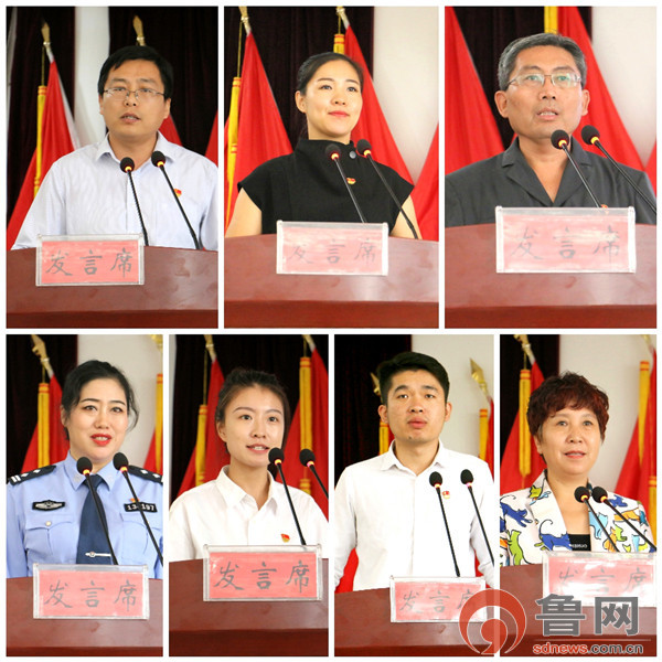 宣讲会上,来自济南市不同行业的七位优秀代表、基层工作者结合自己的工作生活,讲身边人、说身边事,以小见大、以情动人,真正让党的创新理论“飞入寻常百姓家”。陈军宣讲的《共产党人初心“解码”》,鼓舞广大党员干部不忘初心、牢记使命,继续前进;杜鹃宣讲的《三代从戎军旅路》述说了祖孙三代相继穿上军装的故事,虽然年代不同、使命不同,但同样的是对党和国家的热爱与忠诚;《甘做让百姓满意的基层法官》亓民川讲述自己27年工作在基层人民法庭第一线,初心不改、恒心常在,两袖清风,一身正气……七位宣讲员以饱满的精神状态、质朴的情感表达,讲述着真实的动人故事,映衬出他们“听党话,跟党走”的新时代奋斗者形象,赢得现场观众的阵阵掌声。