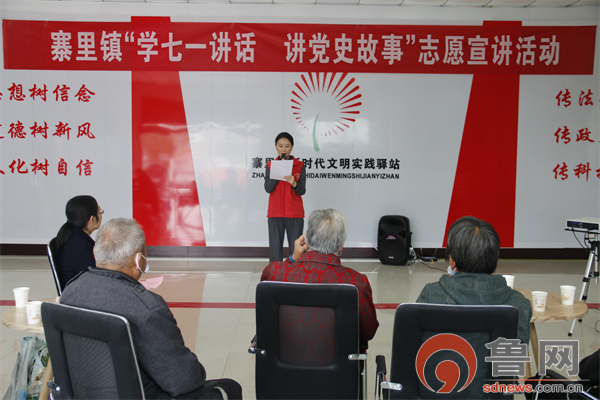 在驿站,寨里镇中心卫生院医护人员志愿为老年人测量血压;播放影片《郭富山》让来大碗茶驿站休息的群众观看,将便利服务送到群众心坎上。同时,还举行了“学七一讲话 讲党史故事”志愿宣讲活动,“大碗茶”驿站的3位宣讲员以《感恩祖国感恩党》《信仰的力量》《清泉汩汩润心田》为题进行了宣讲,宣讲员用饱满的热情和质朴的语言将一个个感人的瞬间、一件件生动的事迹娓娓道来,赢得了现场观众的阵阵掌声。寨里镇党委委员李红说:“寨里镇大碗茶驿站今天正式投入使用后,我们将充分发挥大碗茶驿站理论阵地的重要作用,讲好寨里故事,唱响寨里声音。”