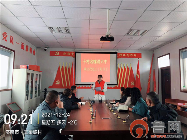 鲁网12月28日讯(记者 邵炳茹)12月24日,济南市莱芜区张家洼街道王梁坡村在会议室组织全体工作人员开展学习党的十九届六中全会精神宣讲活动。