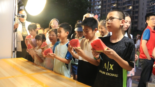 在吃西瓜比赛环节,小朋友们摩拳擦掌、跃跃欲试,随着主持人一声令下,孩子们迅速拿起西瓜,或左右开弓、或埋头猛啃,现场加油声、欢笑声此起彼伏。经过激烈角逐,共有四名小朋友脱颖而出,获得精美奖品。赛后,工作人员将切好的西瓜分发给现场的居民,大家围坐在一起,品尝着清甜多汁的西瓜,在欢声笑语中共享夏日的清凉与甜蜜。