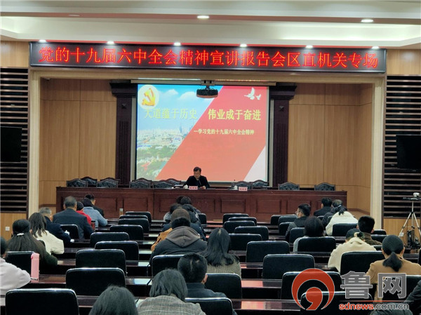 鲁网12月16日讯(记者 吕胜男)12月15日上午,党的十九届六中全会精神宣讲报告会莱芜区直机关专场在区法院召开,来自区委区直机关工委各直属党组织的82名党务干部、党员代表参加宣讲报告会。此次报告会拉开了党的十九届六中全会精神莱芜区直机关宣讲团开展宣讲活动的序幕。