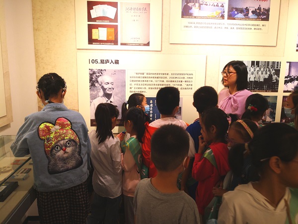 活动一开始,图书馆工作人员先带领小朋友们参观了馆史陈列馆,通过讲解参观,小朋友们了解了省图书馆从遐园奠基到涅槃重生再到繁荣发展的百年历史,特别是抗战时期,保护文物书籍的载书播迁史让小朋友们知道了文物书籍保护工作的艰辛,更加激发了他们爱书护书的热情。