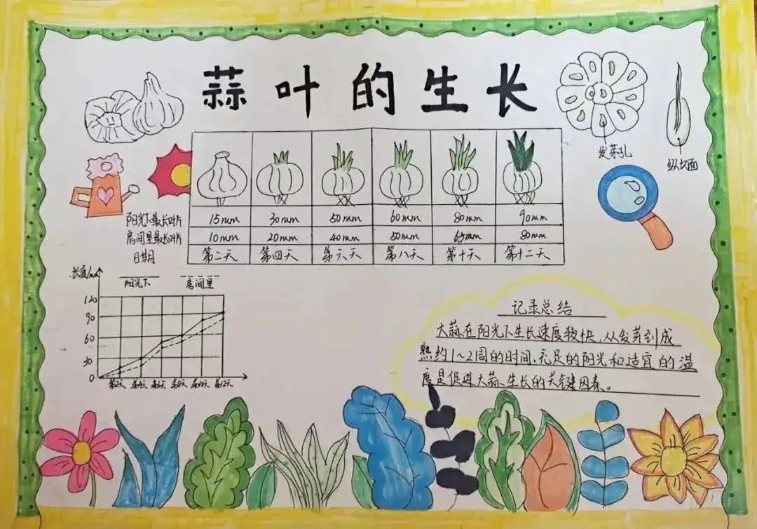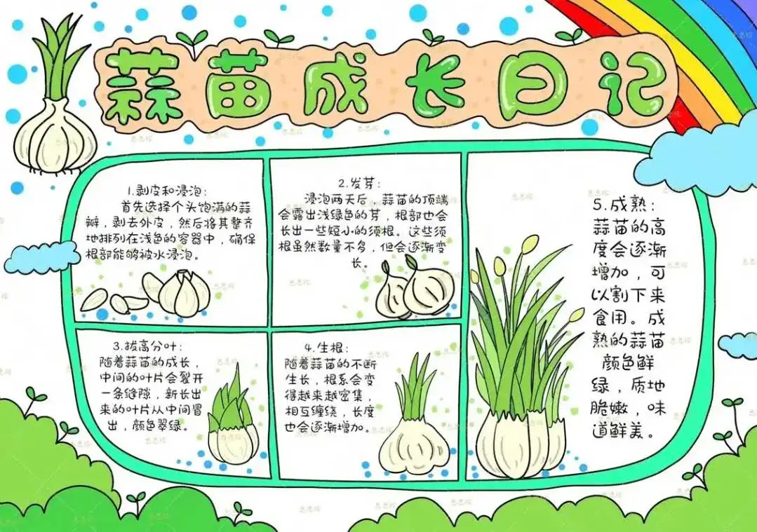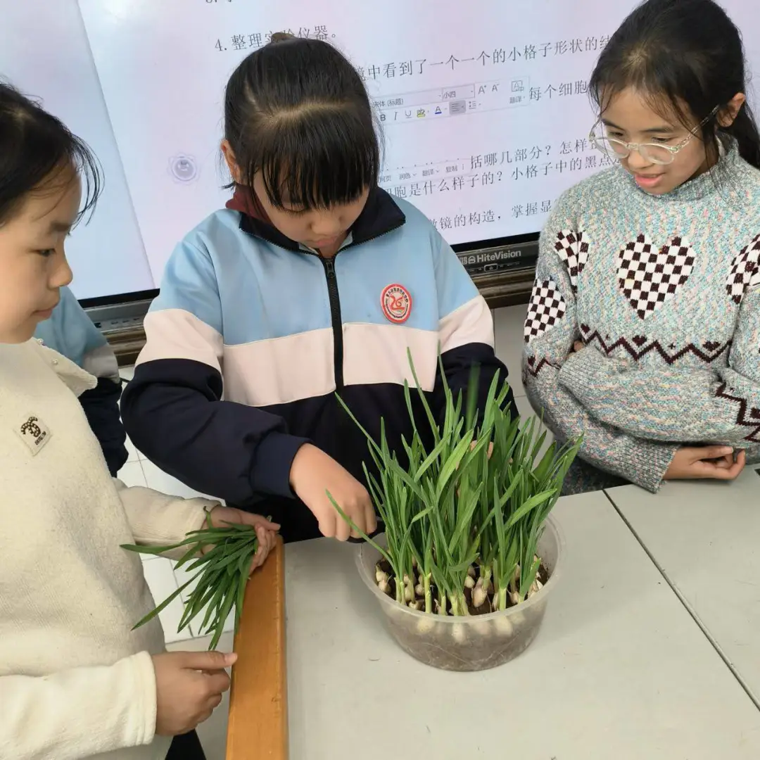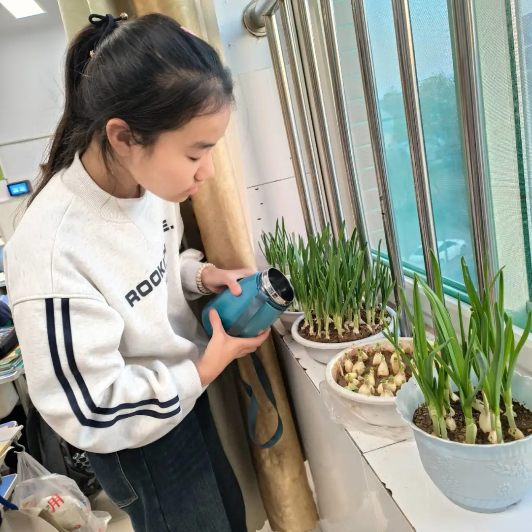 种好蒜种后,同学们便多了一份甜蜜的牵挂。每天清晨到校或课间时分,他们总迫不及待地跑到窗台前,给蒜苗浇水,仔细观察自己那片“小田园”。他们用直尺为蒜苗测量“身高”,用画笔在本子上认真描绘出新叶的每一丝变化。他们在日复一日的呵护中,不仅见证了生命的坚韧与奇迹,更体验了一次与自然生命的深入交流和情感联结。