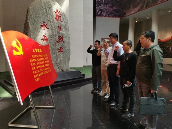 参观活动结束后,全体党员饱含深情,在“抗日烈士、永垂不朽”的石碑旁庄严宣誓,重温入党誓词,警醒自己不忘初心、牢记使命。
