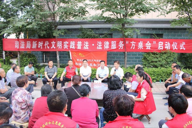 这是章丘区创新推出的开展的互动普法模式——普法“方桌会”活动。为让法律从纸上走进百姓生活中,24支普法志愿者队伍化身“法治传播员”和“法律服务员”,深入基层,面对面为群众讲法律、听民意、解难题。不管是田间地头,还是社区小院,经常看到这样的情景:一张小方桌、几个小板凳,普法志愿者、律师与群众围坐一起,用土乡音话法律家常。这一做法被中宣部理论热点面对面官微、人民网、中央党校《学习时报》、大众网等中央、省级媒体报道点赞。目前,已累计举办“普法方桌会”活动74场次,发放民法典书籍8300余本,法治信仰在一场场“方桌会”围坐中落地生根。