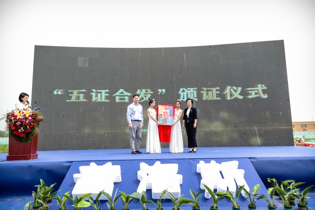 今年,该项目在市区行政审批服务局的大力支持下,深入企业现场帮办、协调解决困难、指导申报材料,实现了“五证合发”,加快推进了项目“拿地即开工”,真正为企业解决了办证难、拿证难的问题,减轻了企业各项成本,也为园区高端物流产业的快速发展提供了强大助力。
