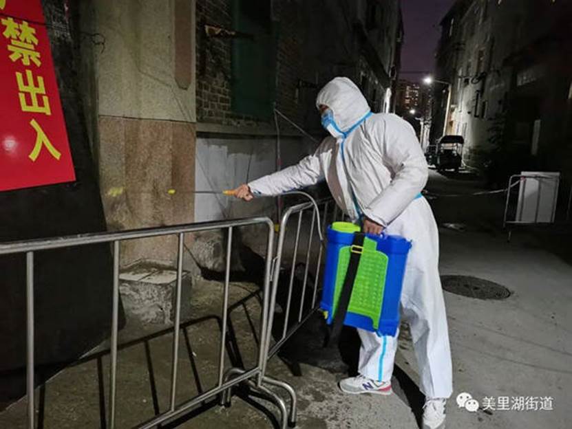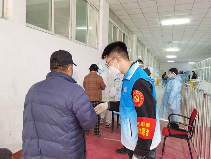 志愿者们或在核酸检测现场维护秩序或是背负起几十公斤重的消毒液进行消杀或是变身“跑腿”为有需要的居民送粮送菜.......