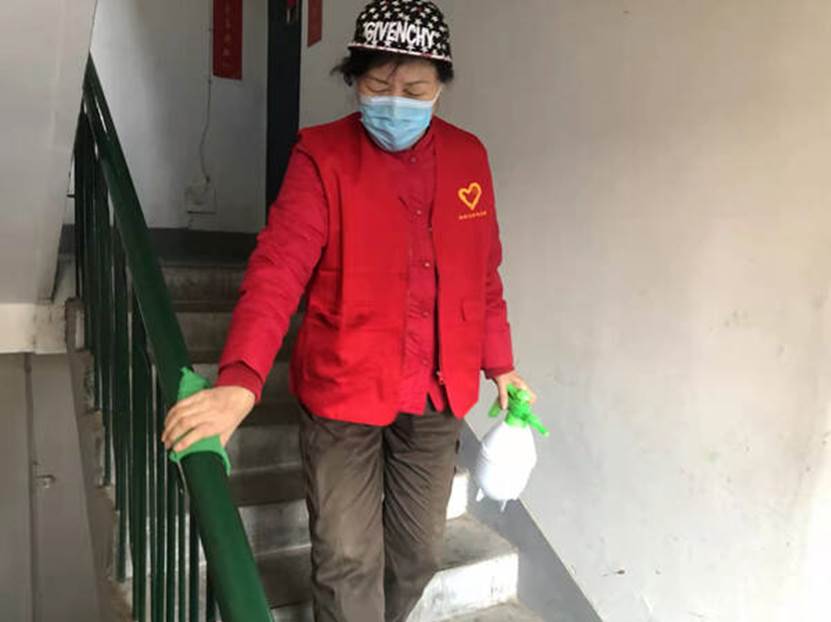77岁的刘云霞是营市街街道舜承苑社区的志愿者,每天都拿着消杀工具,对所在小区的6号楼楼道的角落、楼道死角、扶梯等进行消杀。平时出门的时候,她的口袋里总会多带几个全新的口罩,碰见没带口罩的居民主动一个送人家。“现在这个形势,我们该出力的出点力,能克服的就尽量克服。”每当被问及为啥这样干时,她总是这样回答。