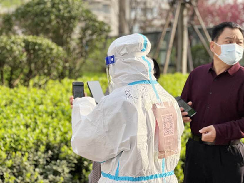 张庄路街道的检测点,一位大白背上贴着醒目的红纸,走近一看是新推出的“场所码”,“扫码了您?”成了他的口头禅,无独有偶,在腊山街道,一位志愿者的胸前贴着:一人一码,扫码登记,不得外借。“在出口就把信息登记好,为大家节省时间。”