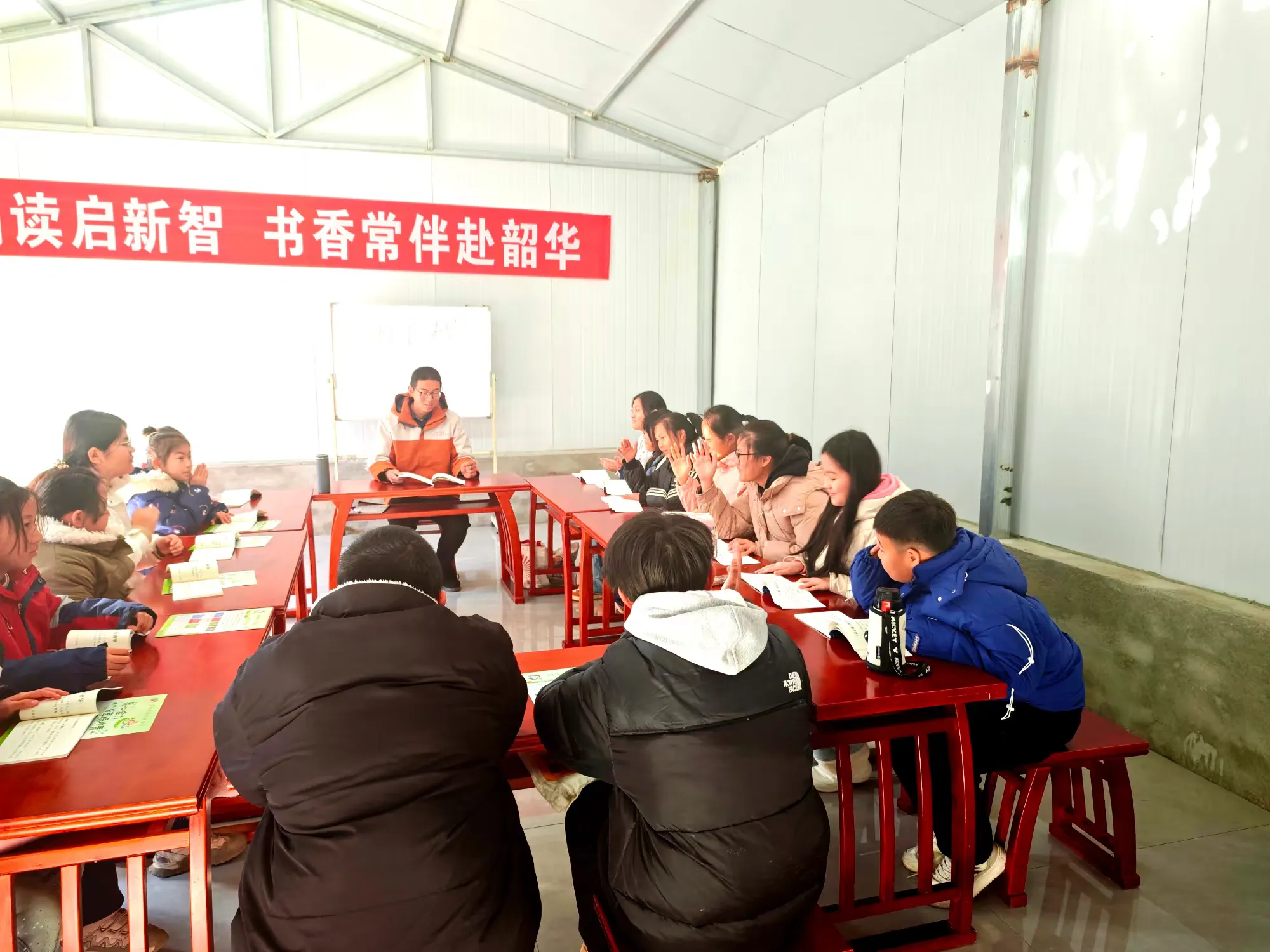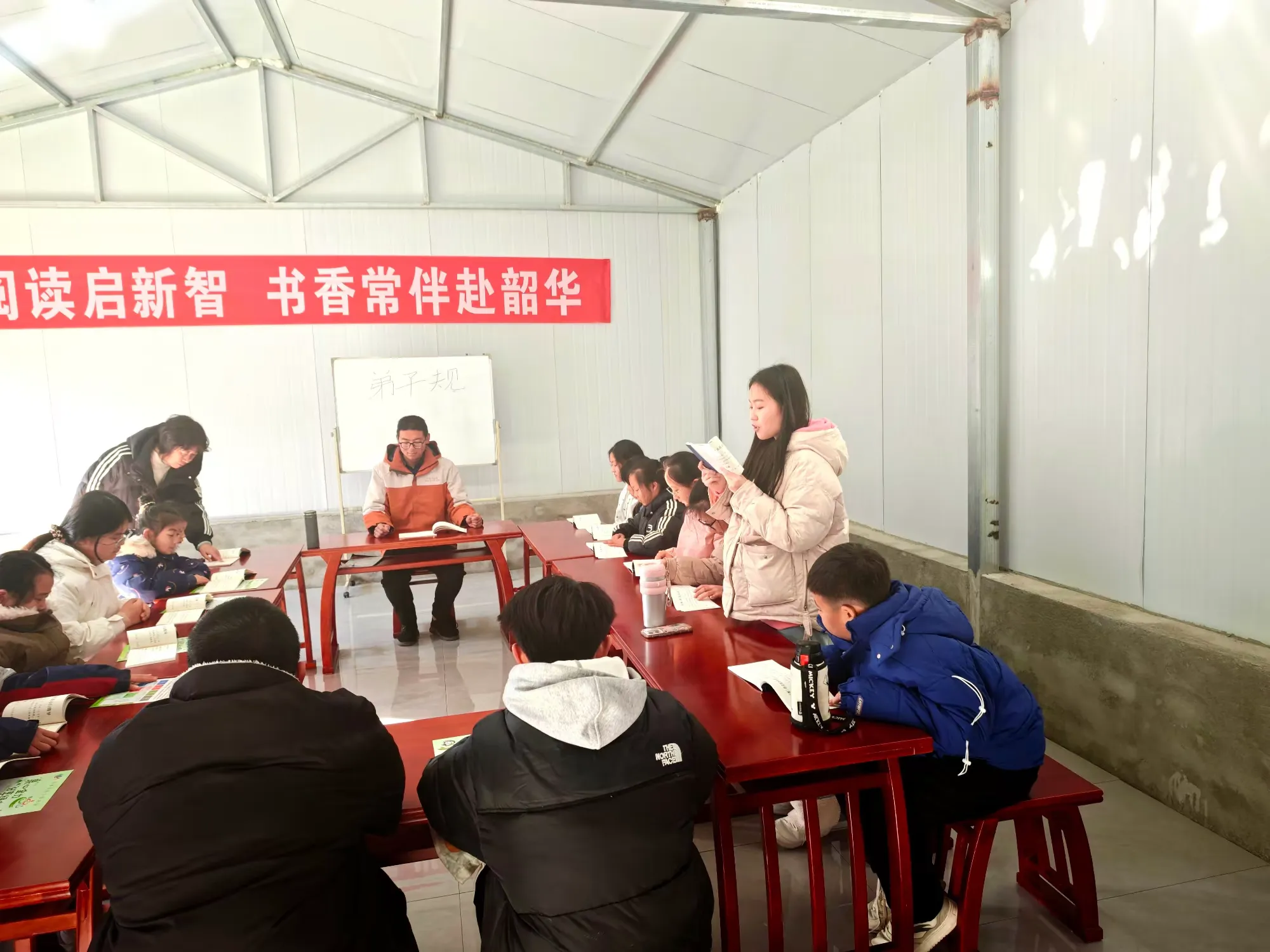 章丘区文祖街道水龙洞村开展“书香润童心 经典贺新春”阅读活动