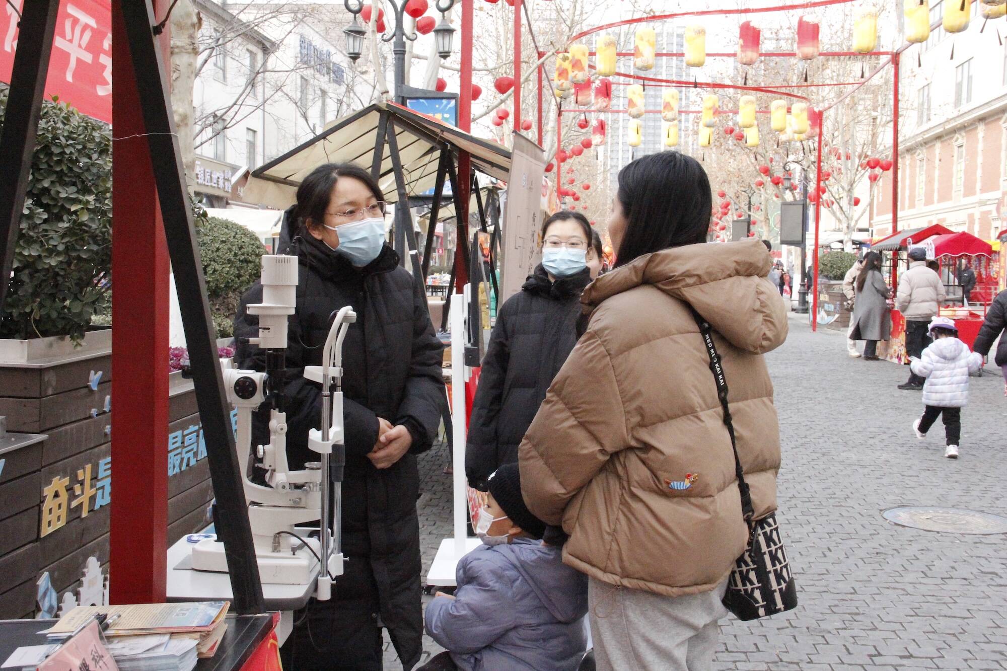 除了“逛”与“吃”,大集更提供了多元的惠民服务与文化体验。在书籍文创展区,济南出版集团和济南邮政槐荫分公司带来丰富书籍,涵盖农业技术、少儿读物、经典名著等多个品类,同步推出“买赠”“折扣”等惠民活动,让书香浸润大集。在中医药文化长廊,前来咨询和检查的市民络绎不绝,服务台前排起了长队,老中医望闻问切,针灸、刮痧等传统技艺现场展示,守护着百姓的健康年。