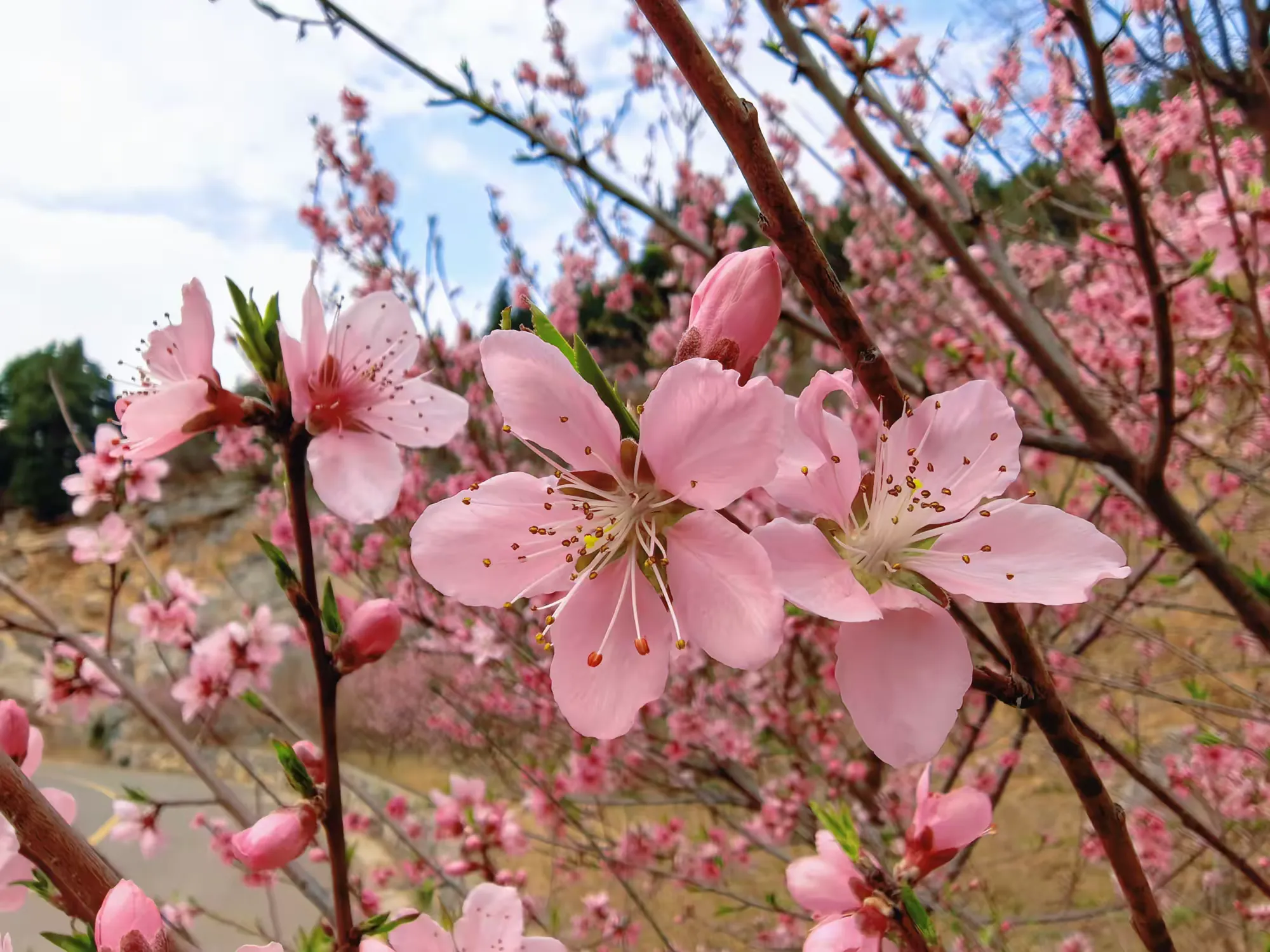 走进石门村,空气中弥漫着淡淡的花香。这里的桃花热烈、奔放、充满野趣,一树树、一簇簇,粉若胭脂,在阳光下恣意舒展。